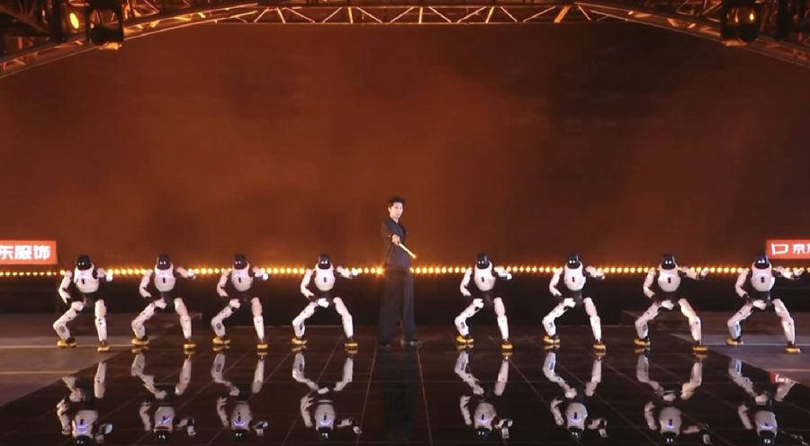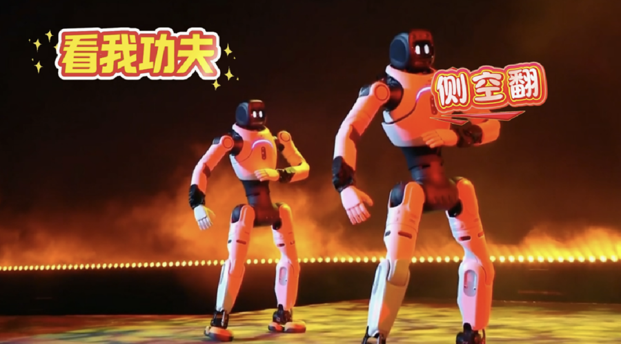 此外,智元机器人还和王鹤棣共同带来节目《闻机起武》,伴随着激昂的《男儿当自强》音乐,灵犀X2和王鹤棣炫酷登场,随后8台灵犀X2连续后空翻、前空翻、踢腿、侧空翻等高难度酷炫动作轮番上阵:凌厉的踢腿动作劲道十足,腿部关节发力精准,尽显力量感;侧空翻时躯体旋转角度丝毫不差,与舞台灯光交织出极具冲击力的视觉效果;前空翻衔接利落;随后精准完成连续后空翻,落地稳稳当当;气势如虹尽显机器人钢铁“真男儿”本色。